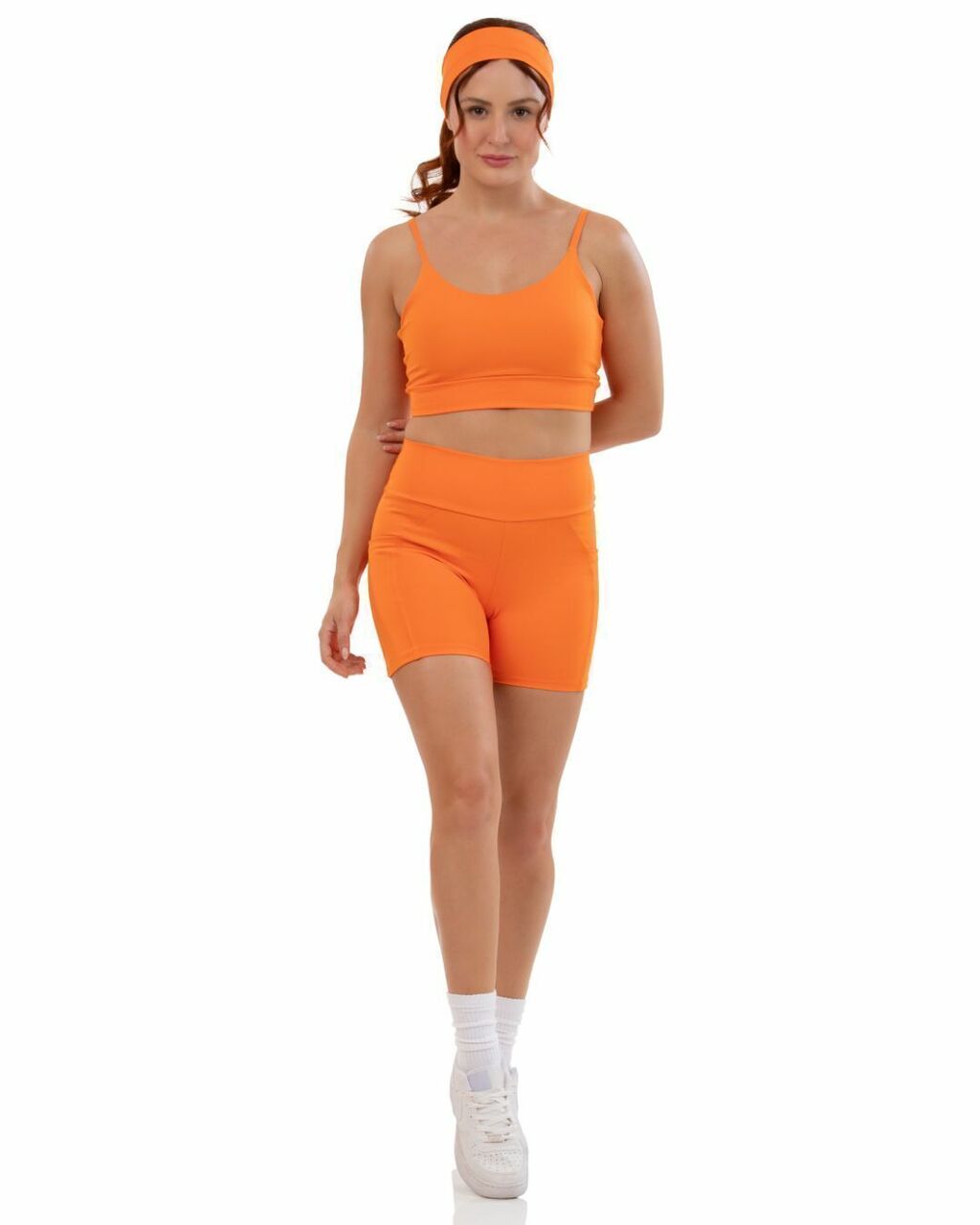 Descubra o Conjunto Action, uma combinação perfeita de shorts com bolso e um top de alça com passante. Confeccionado com 84% poliamida e 16% elastano, proporciona ajuste ideal e liberdade de movimento.